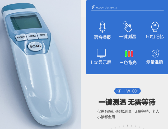 Como un dos signos vitais básicos, a temperatura corporal pode reflectir o estado metabólico e o estado de saúde do corpo. Con referencia a moitos tipos no mercado, a opción máis conveniente é o termómetro da fronte sen contacto. Para evitar erros de medición da temperatura, é necesario escoller un termómetro de testa de alta calidade. Por exemplo, KIEYYUEL â € ™ s KF-HW-001, unha proba de infrarrojos de alta velocidade, pode percibir cambios na temperatura corporal de 0,1 ºC.
